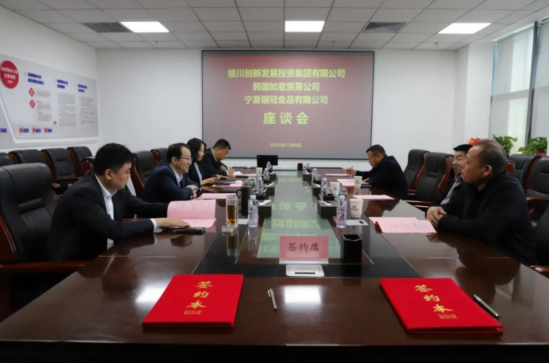11月9日上午,銀川創(chuàng)投集團(tuán)黨委書記、董事長何曉銳在集團(tuán)會(huì)見了前來拜訪的韓國RURI TRADING COMPANY(如意貿(mào)易公司)中國區(qū)代表李鐘明一行,并現(xiàn)場(chǎng)見證集團(tuán)旗下寧夏銀冠食品有限公司與韓國如意貿(mào)易公司簽訂1000萬美元的優(yōu)質(zhì)冷涼蔬菜外貿(mào)銷售協(xié)議,助力寧夏優(yōu)質(zhì)蔬菜邁向國際。集團(tuán)公司總經(jīng)理王麗梅、副總經(jīng)理莊昊、綜投公司總經(jīng)理馬曉偉、銀冠食品公司總經(jīng)理李紅兵等參加簽約會(huì)議。