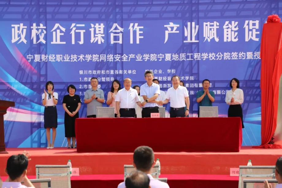 為深入貫徹習(xí)近平總書記關(guān)于職業(yè)教育的重要指示批示精神,助推集團在產(chǎn)業(yè)發(fā)展、專業(yè)建設(shè)、人才培養(yǎng)、技術(shù)提升等領(lǐng)域取得新成效,為銀川市“算力之都”建設(shè)提供人才支撐。由寧夏財經(jīng)職業(yè)技術(shù)學(xué)院、蘇銀產(chǎn)業(yè)園管委會和銀川創(chuàng)投集團共建的寧夏財經(jīng)職業(yè)技術(shù)學(xué)院網(wǎng)絡(luò)安全產(chǎn)業(yè)學(xué)院寧夏地質(zhì)工程學(xué)校分院簽約暨揭牌儀式7月6日上午在寧夏地質(zhì)工程學(xué)校舉行。